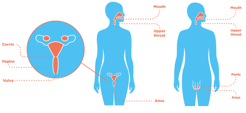 HPV lives in the skin and cells lining the inside of our body. This includes the genital area, mouth, and throat.
